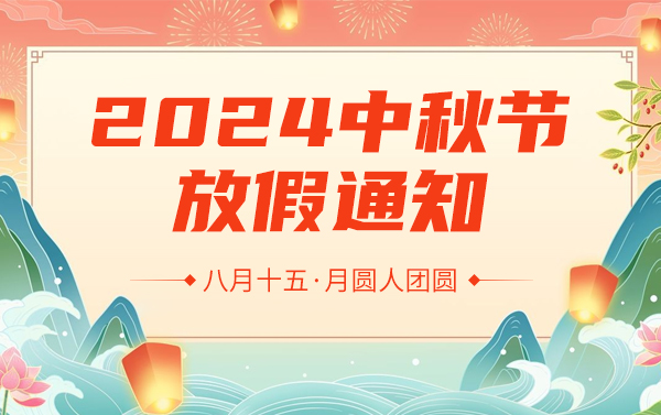 值此中國(guó)傳統(tǒng)佳節(jié)——中秋節(jié)來臨之際,我們向您致以最誠(chéng)摯的節(jié)日祝福,感謝您長(zhǎng)期以來對(duì)我們公司的支持與信任。?1.為慶祝中秋佳節(jié),根據(jù)國(guó)家法定假有關(guān)放假規(guī)定,并結(jié)合公司實(shí)際情況,現(xiàn)定于2024年9月15日... 查看更多>